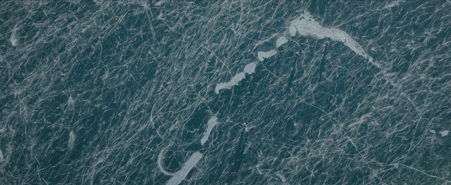 Human figures fly across this temporal landscape with speed and fluidity, etching marks into the ice that will soon be obscured with infinite white.